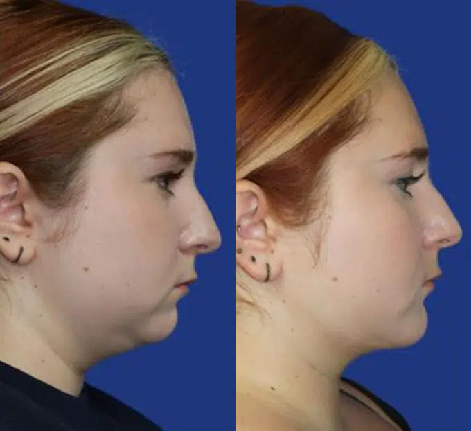 This beautiful patient wanted to contour her lower face and neckline, as well as balance out her profile. This was done with a combination of procedures: chin augmentation, neck lipo, and co2 laser to enhance skin quality.